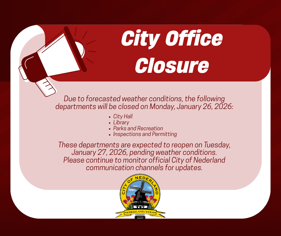 We invite you to explore all that Nederland has to offer, from our historic Dutch heritage to our modern Texas spirit. Welcome to Nederland – where community matters and everyone feels at home!